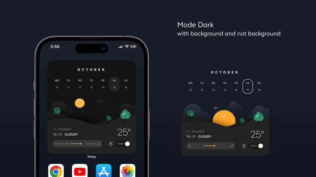 Beautiful Widgets that change throughout the day with movements of the sun and clouds